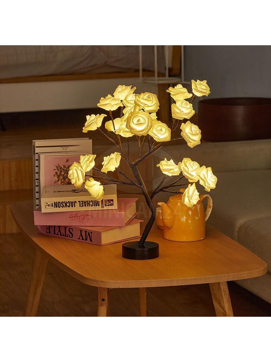 Светильник светодиодная роза LED, белые цветы